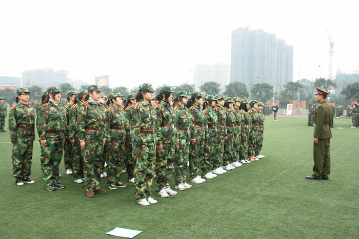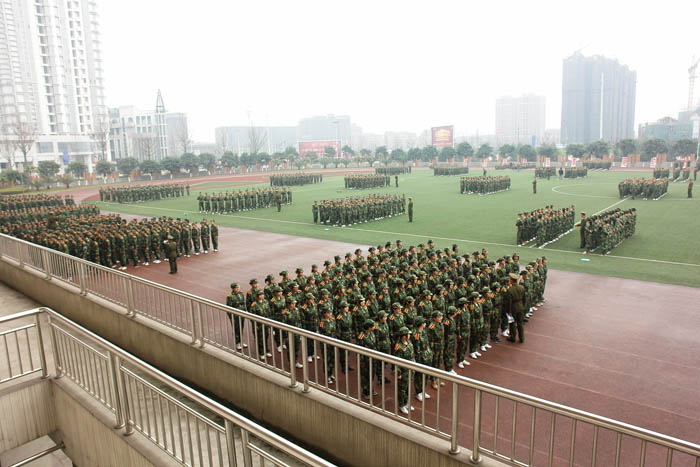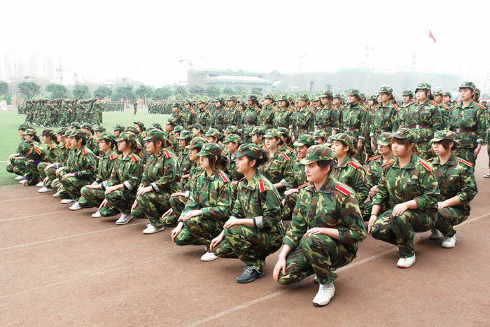 开训后,才开始真实体会军训的苦。每天到达训练场第一项就是站军姿,“挺胸抬头收腹!双手自然下垂紧贴裤线!双眼直视前方四十五度处!”绝对不可以乱动,这让我们深切体会了军队的纪律严明。还有不停的队列练习,每一个动作都严格要求,即使只是一个简单的摆臂动作也要单独练习上百次。齐步走、正步走、胯立、蹲姿、四面转法……这些看似简单的动作,都是每天必练的科目,手臂麻了、腿脚酸了、手指关节在练习摆臂时被身边的同学打痛了……每天最期待的就是训练间隙宝贵的十分钟休息,所有人都迫不及待的盘坐在草地上,或抓紧时间去卫生间,或相互倚靠着聊天,或闭上眼睛休息,或趁机赶紧揉揉酸痛的关节。突然发现平时不以为然的十分钟居然可以做这么多事,绝对不是微不足道的一小会时间。短暂的休息过后,又继续投入紧张严肃的训练中。遗憾天公不作美,军训的几天刚好是倒春寒其间,原来期待的阳春三月没有露面,却下了好几天的细雨,阴冷的寒气总是贴在身上,久久散不去,冷也只能忍着。于是每到了休息时间一低头,双手已经是“红得发紫”了。晚上还要训练,夜晚是最寒冷的时候,甚至几次都是冒雨训练的,每日回到寝室全身酸痛无比,倒在床上就能立刻睡去。曾无数次抱怨,军训太苦太累了,盼望着军训早点结束。