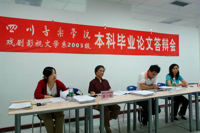 2009年5月27日,我系2005级本科毕业论文答辩工作圆满完成。05级87名学生中,有86名学生参加论文答辩。我系成立了以系主任王慧才教授任主任的论文答辩委员会。邀请到国家一级编剧赵尔寰老师为答辩委员会成员参加答辩工作。答辩小组分为四组紧张有序地进行答辩。许多学生从容地回答了答辩小组的提问,令答辩老师满意。 我系论文组织工作一直受到系上领导的高度重视。本届论文工作从08年10月开始启动,并进行了合理分组指导。各组指导老师从每位同学的选题、开题、收集资料到各阶段写作的整个论文写作过程悉心指导,花了不少心血。同学们认真准备。论文内容丰富,涉及电影、电视、新闻、广告、古代文学、现当代文学等戏剧影视文学专业诸领域。其中不乏思想深刻,见解独到的文章,从中可以看出同学们的治学态度和专业水平。同学们向辛勤耕耘的老师交了一份满意的答卷。