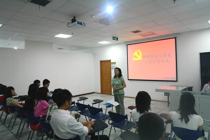 2010年7月1日中午1点,在纪念建党八十九周年之际,川音戏文系党支部在校图书馆举行了庄严而隆重的学生党员宣誓活动。系党支部书记褚明蓉、系办公室主任王安维、系团总支书记黄景等出席了此次活动。在系团总支书记黄景的领誓下,我系2007/2008两届共计51名新发展的本科生预备党员进行了入党宣誓,短短一百多字的誓词是他们入党后对党的第一个承诺。 系党总支书记褚明蓉对活动进行了高度赞扬并对新发展的党员提出了几点希望:第一,要加强理论学习;第二,要加强党性修养,提高自身素质;第三,要提升科学文化知识和专业知识的素养;第四,要起模范带头作用。 宣誓仪式是庄严神圣的一课,是对预备党员进行入党教育的一个重要环节。近年来,系党支部按照“入党前把关,入党后加强教育”的指导思想,大力加强学生党员的思想政治教育,强化学生党员意识,提高学生党员质量。