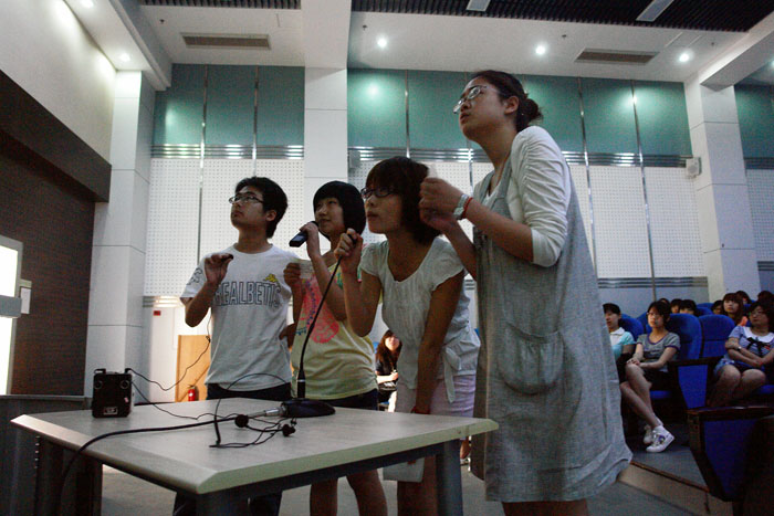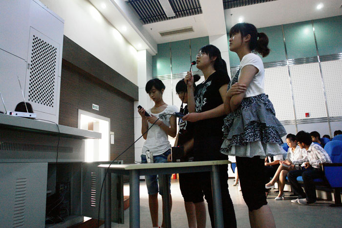 2011年4月28日下午3时,戏剧影视文学系于学术报告厅,举办了第二届电影配音大赛总决赛,并邀请到系主任助理左芝兰副教授、系办公室主任王安维老师、专业老师任晓楠老师、林婧婧老师以及辅导员张景龙老师担任本次比赛的评委。 比赛在轻松的氛围中开场,按规定需进行两轮分别为自选视频配音和指定视频配音的比赛,最后以两轮成绩的总和作为本次比赛的最终成绩。参赛的同学们都做好了充足的准备,以饱满的热情,令声音和画面“互利共赢”达到升华。特别是在第一轮自选环节中,多个组合精心对台词进行了改编,使其源于生活,高于生活,例如根据《让子弹飞》改编的《让挂科飞》、就《猫和老鼠》改编的某女生宿舍的小故事都为同学们带来了极大的欢乐,掌声不绝于耳。并且多数组合还在台词中融入了许多时尚的流行语,更将方言贯穿其间,趣味颇多。两轮比赛过后,还因两个参赛组的比分相同而进行了一场终极PK,可见本次比赛在欢愉中仍旧存有激烈的竞争。 通过任晓楠老师的点评,参赛选手以及现场的同学们,皆深刻的体会到声音同样是塑造形象的重要手段和表达感情的重要方式,懂得了在今后的创作中,不但要重视对白的描写,更不可忘却声画的恰当运用。