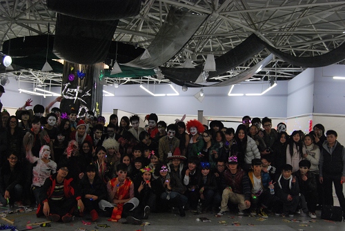 5点30分,大厅氛围已浓,还未吃晚饭的工作人员都在做最后的准备。一切就绪,他们也会换上自己精心准备的服装,来到自己的工作岗位,为化妆舞会的顺利进行默默地付出着。6点30左右,大厅已经排起长队,准备入场。同学们都精心打扮,女仆,女巫,魔法师,僵尸,各种装扮别出心裁。7点整随着灯光熄灭,舞会正式开始。