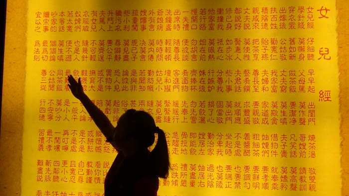 接着步入了国防兵器馆。这里陈列了许多兵器,同学们认真地跟在解说员身后,听着,看着,偶尔点点头。趴在玻璃台上近距离得观察着那个时代的兵器,属于先烈的战斗力量——手枪,大炮,机关枪,坦克……大家都很兴奋,纷纷和这些国防兵器合影留恋,顿时有了些许穿越的意味。正在大家意犹未尽之时,同学们已经来到了三寸金莲文物陈列馆。在走过一片凹凸不平的路面时,经解说员介绍,这是为了让游客深刻体验到古代被裹了脚的女人们走路时的感觉,一种落差和不平衡感让部分女同学已经互相拉着手。三寸金莲馆的陈列物品和介绍,让同学们深刻地对裹足时代残忍社会现实的了解,同时也感叹时代的进步和女性社会地位的提高。而馆内最后所陈列的部分未裹脚女性的成功,强烈的对古代畸形审美进行了批判和讽刺。
