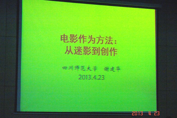 2013年4月23日下午两点半,四川师范大学谢建华副教授应邀来到新都校区图书馆学术报告厅,带来了题为《从迷影到创作》的人文艺术讲座。本次讲座由伟德bv国际体育新都校区教务办主办,新都校区管委会协办,戏剧影视文学系承办。讲座由学院教务处处长助理刘道莉老师主持,戏剧影视文学系的师生及其他院系的同学积极参与了此次讲座。 谢建华副教授,北京电影学院毕业,博士,现为四川师范大学新闻与传播学院编导系主任,硕士研究生导师。 谢老师此次为伟德官网师生讲述了关于“迷影到创作”的种种途径与方法。开场前,谢教授为师生们放映了卢正雨的新剧《嘻哈三部曲之绝世高手》的片段,使同学们体会到电影创作的神奇。随后,谢教授讲述了什么是迷影,这需要同学们有足够的阅片量,至少500部。同时向同学们推荐了“CMCT”观看高清电影的专业网站。接着,谢教授也以北大同学拍摄的微电影《下一站》为例,向同学们介绍了微电影的创作及其误区,他衷心地希望讲座能够帮助同学们拍出优秀的作品。 讲座结束后,戏文系主任助理左芝兰副教授进行了简短的总结,谈了自己的收获,同时希望同学们也能够从中学习到有关创作电影的知识与方法。 这次讲座虽然只有短短的一个半小时,却让同学们明晰了电影创作的方法,受到了同学们的热烈欢迎。