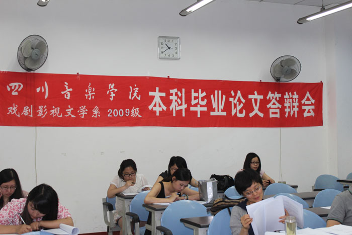 我系于2013年5月31日举行2009级毕业生本科论文答辩。答辩分四组,论文题目涉及电影、文学、新闻、广告等领域。同学们认真准备,较好地回答了答辩老师的提问。参加答辩的104名学生中,有101名顺利通过答辩。答辩委员会的专家教授对本届毕业论文及学生答辩成绩感到满意。