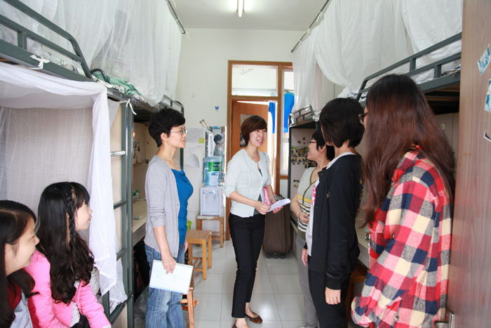 2013年9月6日上午10点,我系副系主任左芝兰副教授、系党总支温妮副书记在辅导员康涛的陪同下深入我系2013级新生寝室走访。走访中左主任和温书记亲切关怀新生,了解新生住宿方面的需求,及时解决新生住宿方面存在的问题。还与在寝室的新生家长亲切交流,希望家长能够多与系上辅导员和老师联系,加强沟通,形成合力,让学生能够顺利的完成四年学业。