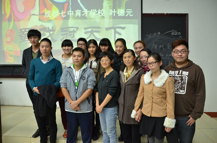 2013年10月30日晚,全国优秀教师叶德元老师为我系师生带来了一场《蜀戏冠天下》的川剧专题讲座。新都校区管委会李毅主任,我系副系主任左芝兰副教授,办公室主任王安维老师,教务处胡杨老师,以及舞蹈系部分老师出席了此次讲座。 讲座开始前,新都校区管委会李毅主任发表了讲话,他对同学们学习、弘扬川剧的热情予以高度肯定和大力支持,并且,他也对文化的创新与发展充满了期待! 此后,讲座正式拉开了帷幕,叶德元老师声情并茂的为师生们讲述了川剧的故事和川剧的发展、演变。细心地为大家讲述了川剧特有的腔调“昆腔、高腔、胡琴、弹戏、灯调”以及川剧最独特的“帮腔”。在川剧赏析过程中,叶德元老师还亲自为大家展示了川剧的唱腔,道具的拿法等,搏得了台下师生的阵阵喝彩!此外,叶德元老师还为师生们介绍了像《中国公主杜兰朵》、《死水微澜》、《刘氏四娘》、《好女人坏女人》等川剧名段。在讲座的最后,叶德元老师介绍了川剧的生存、发展现状,表达了自己对川剧的热爱之情,同时也呼吁在座的老师和学们珍惜民族艺术,将中国的传统文化发扬光大! 伴随着师生们热烈的掌声,《蜀戏冠天下》讲座落下了帷幕,最后,左芝兰副教授对叶德元老师的到来表示了衷心的感谢,并且鼓励同学们了解更多关于川剧的知识,弘扬中国传统文化,将专业知识和传统文化相互融合,使文化得到创新和发展。