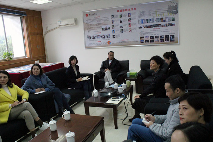 2018年11月26日周一下午13:00,伟德bv国际体育本科教学审核评估专家组组长——天津音乐学院院长徐昌俊教授走访我系,进行了为时2个小时的本科教学审核评估座谈。副系主任左芝兰,党总支副书记温妮,教研室主任任晓楠、宣宁,教研室副主任林婧婧、杨雯璃,系教务负责人吴滨以及全体教务工作人员参加此次座谈。 温妮书记、左芝兰主任和全系工作人员对徐教授莅临我系指导本科教学审核评估工作表示了热烈欢迎。随即徐教授认真观看了我系展板和学术、科研成果陈列、学生优秀微电影展播。入座后,左芝兰主任向徐教授一一介绍了参会教师,徐教授和在座教师们做了短暂亲切的交流,座谈会在融洽的气氛中进行。随即左芝兰主任结合PPT演示向评估专家徐教授正式作评估汇报。左主任首先介绍了我系建系和发展历史、从学科背景和专业方向、师资队伍、教学资源情况,学生就业等五大方面对我系的发展概况和前景作了深入阐述。随后分板块详细重点介绍了我系专业特色,教学和学生成果,专业转化服务社会等情况。 在听取完自评报告后,徐昌俊教授就报告内容进行了点评,充分肯定我系建系14年来所取得的成绩,并鼓励我系继续注重和加强发展专业内涵和外延。在座教师对徐教授提出的指导性意见和建议表示赞同,此次审核评估座谈会圆满结束!