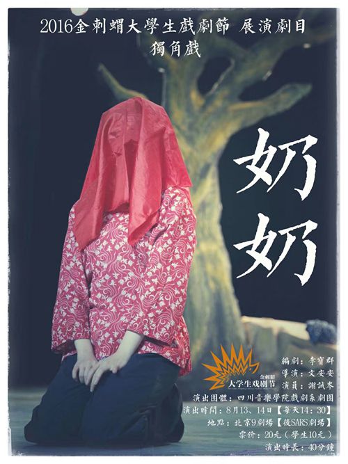 8月21日,2016年度第十五届金刺猬大学生戏剧节颁奖典礼在北京9剧场举行,经过激烈的剧目展演角逐,在本届入选进京展演的18个剧目中,川音戏剧系独角戏《奶奶》,荣获最佳表演奖、优秀剧目奖! 金刺猬大学生戏剧节,是目前国内被官方认可唯独的两个全国性大学生戏剧节之一,也是学术性最权威、历史最悠久、影响最广泛的大学生戏剧节。由北京市剧协、北京市朝阳区文化馆和北京开心麻花剧团共同举办。 本届大学生戏剧节共有来自全国26个省市自治区的 81所大学院校共计112个剧目报名,最终18个剧目入围。 独角戏《奶奶》,由伟德bv国际体育戏剧系精心组织师生共同创排,通过“回忆”的倒叙手法,以及一位演员跨越老、中、青年的表演,展现了中国乡村一个平凡女人的一生,讲述了中国乡村一个普通人近百年“中国梦”的故事。 主创团队: 特邀编剧李宝群(中央军委政治工作部话剧团创作室主任、国家一级编剧); 导演文安安(川音戏剧系青年教师); 舞美设计李艺梅(川音戏剧系副系主任、四川舞美学会会长); 服化造型苏静(川音戏剧系青年教师); 表演指导高品(川音戏剧系青年教师); 演员谢诚岑(川音戏剧系戏剧影视表演专业2014级学生); 舞美制作郑发明(川音戏剧系戏剧影视美术设计专业2013级学生); 工作人员王蓓蓓、薛涵颖(川音戏剧系戏剧影视表演专业2015级学生)