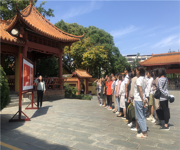 在特级英雄黄继光纪念碑下,戏剧学院党总支书记杨莉带领全体党员面向英雄的雕像庄严的三鞠躬;在杨莉书记的领宣下,全体党员面对党旗,再次重温了入党誓词,句句坚定誓言再次印刻在党员心中。