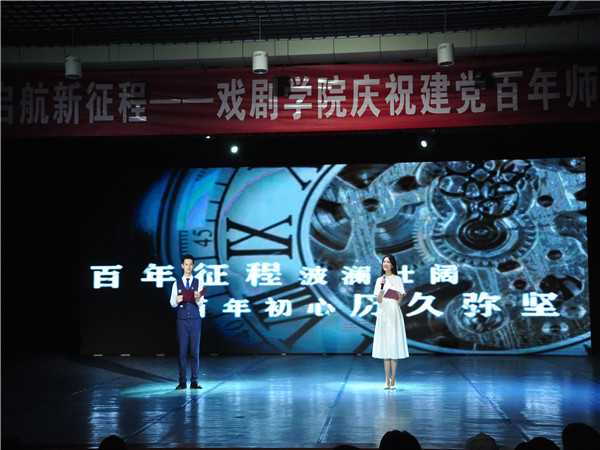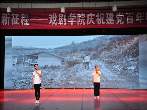 为了喜迎党的百岁生日,6月18日晚,“奋斗百年路,启航新征程”戏剧学院庆祝建党百年师生专场晚会在新都校区一教118排练厅隆重举行。戏剧学院党总支书记杨莉、部分师生观看了本场演出。