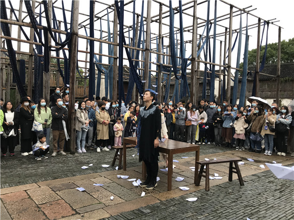 《鱼谣》剧组在乌镇西栅景区染坊晒场进行长达7天12场次的路演。演出期间观众络绎不绝,送出阵阵掌声。演出结束后演员李星晔接受了中央电视台英文频道的采访。