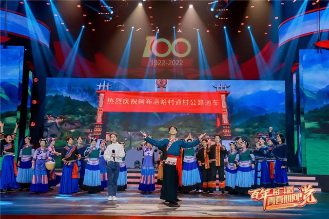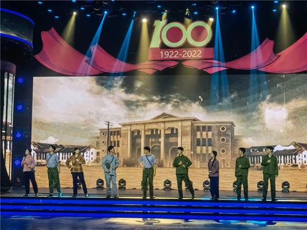 为庆祝中国共产主义青年团成立100周年,5月5日晚,“百年奋斗路·青春心向党”文艺汇演暨青年五四奖章颁奖礼在四川广播电视台举行。文艺汇演以“觉醒年代”“燃情岁月”“春潮激荡”“复兴之路”为主线,艺术再现了中国青年跟党奋斗的百年光辉历程。戏剧学院学子参与了文艺汇演中的情景表演。