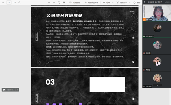 《尼角文创》于2008年在上海设立,拥有完整的服装设计、化妆设计、发型设计的前期筹备、采买、执行的运作流程。负责人介绍了该公司创作的综艺节目、影视剧、话剧、音乐剧等优秀作品案例,并提出了用人需求,希望能招聘到本专业的优秀学生。为学生模拟了用人单位的宣讲流程。