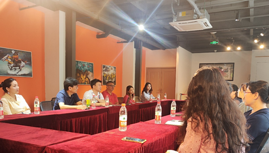 2023年7月21日上午十点,戏剧学院党委书记杨莉、院长、党委副书记李艺梅、副院长左芝兰、戏剧影视文学教研室主任任晓楠、表演专业音乐教研室主任樊猛、教师代表袁婷婷副教授一行6人到位于东郊记忆的时代如歌文化发展有限公司开展访问交流,亚旅卫视董事局主席、时代如歌顾问黄冬,介绍了亚旅卫视在成都落地的情况及目前的一些传播范畴;时代如歌文化总经理、成都国际音乐剧节发起人潘广川详细介绍时代如歌文化发展有限公司的宗旨及项目规划、本年度即将开展的活动等;国家话剧院原副院长、时代如歌艺术顾问罗大军;成都国际音乐剧节联合发起人、伟德bv国际体育流行音乐专业硕士导师周帆;四川传媒学院音乐与录音学院院长俞建中,四川人民艺术剧院制作人李娟伶共同参与交流探讨。交流内容包含人才需求、实践的多样性等多方面,初步达成项目参与意向。