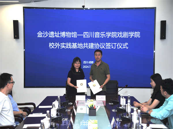 2024年7月10日上午,戏剧学院领导与部分教师赴成都金沙遗址博物馆签订了校外实践基地共建协议。这次活动的举行标志着双方在人才培养和文化传承方面展开了更紧密的合作。