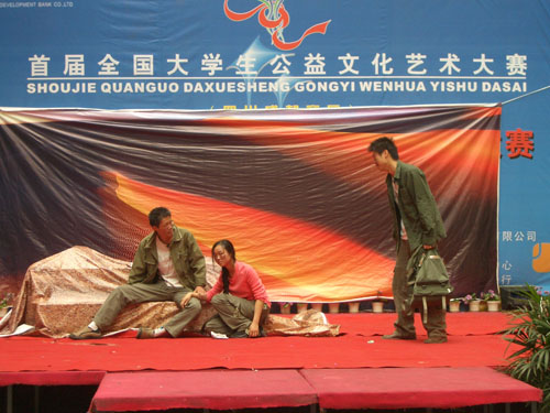 今年5月举办的全国大学生公益文化艺术节戏剧比赛中,我系2004级学生张小龙、贺晓敏、王涛等创作并演出的独幕话剧《最后一课》获得成都赛区优秀奖并闯入四川省决赛荣获二等奖。