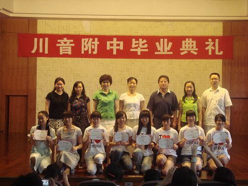 附中2008届校级优秀毕业生(从左到右)分别是:白 皓、王自如、龚 弦、龙若兰、周桃桃、张 庆、呼元惠、赵子渝