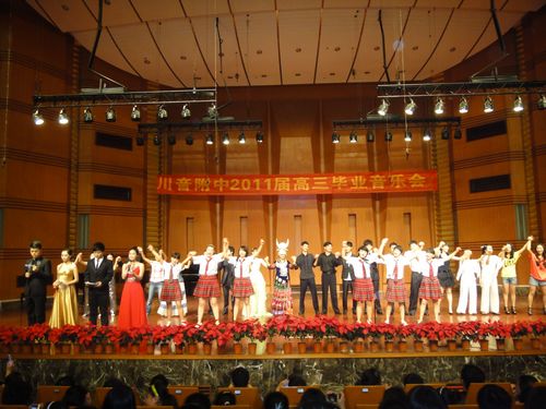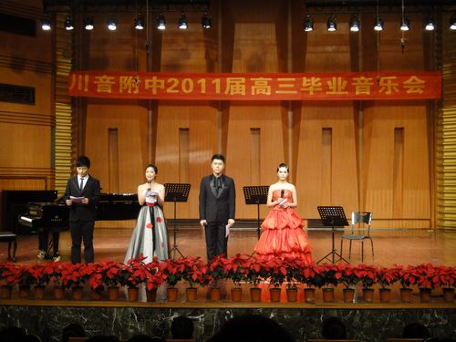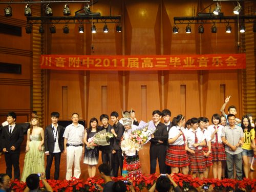 2011年6月22日的晚19:30,附中在学院大音乐厅举行了2011届毕业生音乐会。莅临本次晚会的有附中副校长唐燕翎副教授、党总支副书记罗祥勇副教授、全体师生以及部分学生家长。 音乐会在激昂的音乐声中拉开帷幕,以一曲《闻香识女人》中经典探戈舞曲《Por una cabeca》三重奏开场,由深情小合唱《同桌的你》和《栀子花开》收尾,穿插于其中的有让人重温经典的钢琴独奏,更有苗家民族气息馥郁的民歌;有典雅柔美又不失张力的古典现代舞,更有汉文化瑰宝中博大精深的代表——古琴的清心寡欲的婉转;有富有灵动童话感的钢琴八手联弹和高贵稳重的单簧管五重奏,更有融合了古典吉普赛风与高超现代技艺的古典吉他独奏;有著名歌剧唱段中极富戏剧性的男生独唱与充满青春时尚感的动律街舞,更有动人心弦的男女对唱与点醉江南如小桥流水般婉约的古筝独奏……在这毕业时分,同学们尽情地在镁光灯下释放自己年轻的心,回忆逝去的金色岁月,描画未来的美好年华。而不论他们的梦想有多么不相同,总有一种情怀是每一位莘莘学子都有的,那就是对全体校领导及老师们悉心培养的感谢和铭记,对父母养育之恩和无私关怀的感恩和眷恋。 音乐会在无限的感恩之情中圆满落幕。
