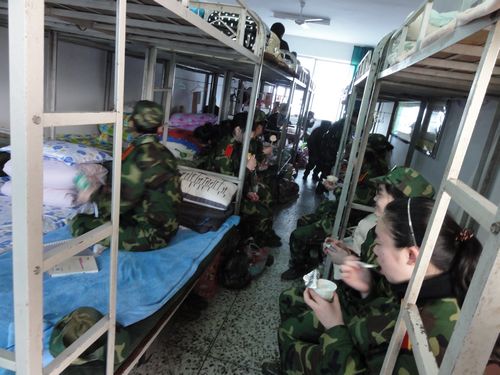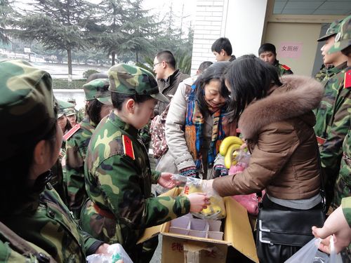 3月9日,附中领导蔡宇校长、罗祥勇书记和高一班主任看望附中高一年级军训学生。