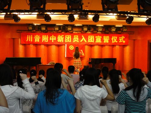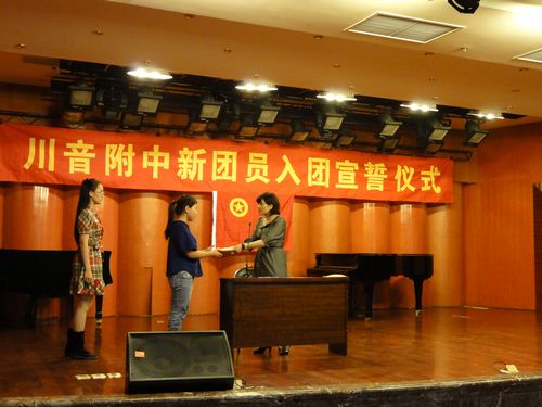 为保持共青团员的先进性,激发共青团员的光荣感和责任感,激励广大团员积极响应创先争优活动,提高团员意识教育。附中团总支组织全体团员于5月3日下午4点在聂耳举行了2011—2012学年新团员入团宣誓活动,附中罗书记、董科长出席仪式。 来自各班级的新老团员齐聚聂耳厅,仪式上,87名青少年光荣地加入了团组织。“我志愿加入中国共产主义青年团••••••”在宣誓仪式上,新团员举起右拳,庄严宣誓,激昂的入团誓词在演奏厅里回荡。随后,董科长宣读了新团员的名单,给予了祝贺及期望,并颁发了团徽和团员证。接着罗书记表彰了“优秀团员”以及“优秀团干部”,对获得表彰的同学给予肯定和祝贺,希望优秀团员们继续起到先锋模范作用,积极进取,努力发扬坚持不懈的奋斗精神,做一名爱党爱国的全面发展的优秀的共青团员。 最后,在《光荣啊,中国共产主义青年团》的共青团团歌声中,附中新团员宣誓活动圆满结束。