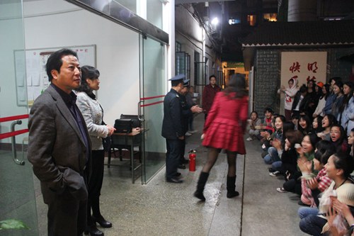 为进一步增强住校学生的消防安全意识,掌握疏散逃生方法,使住校生遇到突发情况能够迅速,有组织,不慌乱地安全疏散,确保生命安全,附中于4月9日晚9:00举行了学生宿舍消防安全演练。参加演练的领导、老师有:蔡校长、办公室陈主任、禹老师及学生科董科长和两位辅导员老师,参加演练的学生有:全体住校生。演练由陈平老师主持。    演练开始,先是听到一阵急促的哨声,生活老师,保安立即到达指定岗位,指导学生快速疏散,同学们用毛巾捂住口鼻,快速小跑,有序撤离到安全地带。全体住校生全部集合完毕后,生活老师开始清点人数,并向负责老师汇报。随即,老师还细心地向同学们讲解了在发生地震或火灾等状况时,同学们应如何报火警,火灾的预防,火场自救及逃生方法等消防安全基本常识。保安赵叔还现场向同学们讲解并演示了灭火器的正确操作程序,同学代表又进行了实际操作演练这样,同学们掌握了消防安全的基本常识,包括正确使用灭火器的方法等。这次消防演练活动的顺利完成,强化了学生们的安全意识并使抽象的安全演练变成具体的实践演习,使同学们基本了解了灾害发生时的应对措施,大大增强了学生的安全意识与自护自救技能,也加强了学校的安全教育工作。