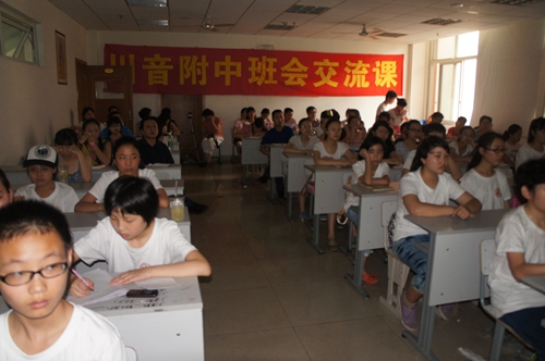 2013年6月18日下午,附中在307教室开展了由初一二班和高二四班展示的主题班会交流课。高二四班的主题是“感受善良,学会宽容,赞美他人”,在班主任何老师的主持下,同学们投入到活动中来,积极参与问答,气氛十分活跃,教室不时传来阵阵欢笑声。通过举实例、朗诵名言警句、做小测试等形式,层层深化主题,最后在《朋友》的歌声中将班会推向高潮。 点评会上,老师们和学生代表也作了精彩的发言。本次主题班会课使大家学到了许多,有很多感触与心得体会,达到了教育学生、锻炼老师、达成交流平台的目的。