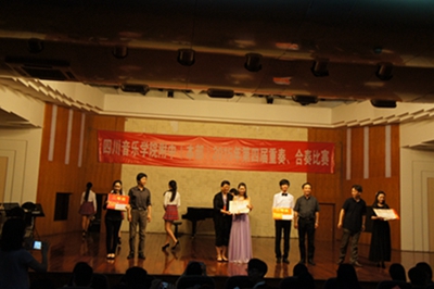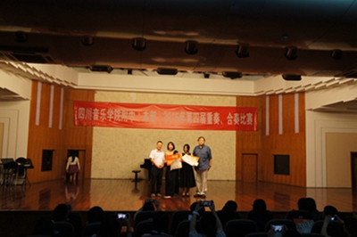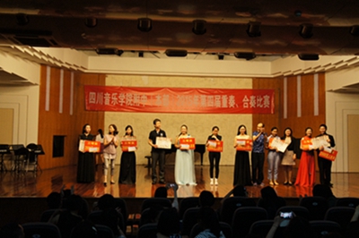 最后,由蔡校长宣布获奖名单,孙院长、评委老师以及附中各级领导分别为获奖选手颁奖并合影。在老师、家长、同学们的阵阵欢呼声中,附中第四届重奏、合奏比赛圆满落幕。
