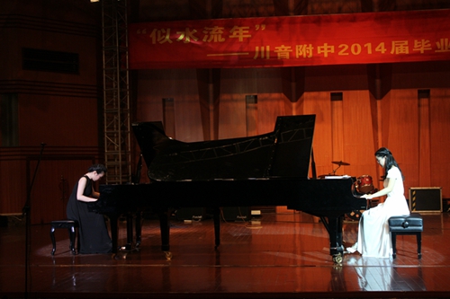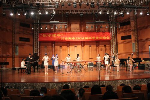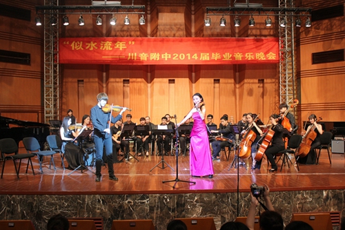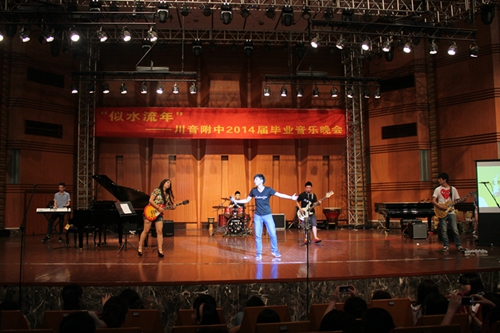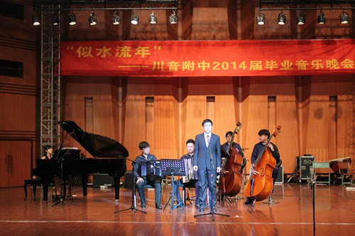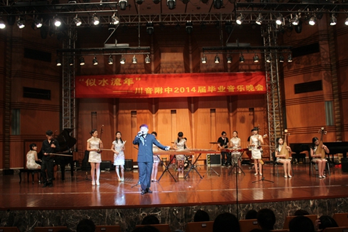 2014年6月22日晚7:30,在伟德bv国际体育音乐厅举行了“‘似水流年’---川音附中2014届毕业音乐晚会”。伟德bv国际体育院长林戈尔教授、伟德官网校长蔡宇教授、常务副校长唐燕翎副教授、党总支副书记罗祥勇副教授以及全校师生出席了晚会。毕业生用感动或悲伤或激昂的表演传递着感恩、敬意、友爱、团结和希望,这是毕业班师生在高考后短短10来天的时间里紧张排练呈献全校师生的一个感恩的礼物。 晚会以西洋弦乐合奏“musical moment”开场,展示了毕业生的专业素养,用切片瞬间将前进的模样刻为永恒。“致我们高中三年的青春”用艺术表演剧的形式展现,场内毕业生都静静感受着离别的不舍、相聚的欣喜、满怀的希望、美好的憧憬。李雨洁等同学的舞蹈串烧“come back home”,用青春热烈传达出不要害怕天空乌云密布,拥有梦想的我们能让生命光彩夺目,引起台下同学们的阵阵欢呼。现场乐队“我相信”达到全场高潮,所有毕业生和演员一起上台合唱,最后以“放心去飞”结束了晚会。领导、老师和同学们纷纷上台合影留念,闪光灯不断,留下了永恒珍贵的瞬间。 即将离开母校踏上新的人生征途的毕业生,承载着母校领导、老师的期盼与希望,带着学弟学妹的祝福,怀着一腔热血,畅想青春的旋律,把握无悔的明天,让青春和梦想起飞,一路高歌。最后,2014届全体毕业生祝母校60岁生日快乐。