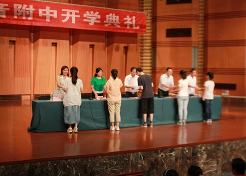 金秋送爽,丹桂飘香。川音附中2014—2015学年开学典礼于9月1日上午8:30在学院大音乐厅举行。全校师生精神饱满地参加了开学典礼。 开学典礼由附中办公室主任陈平老师主持。 首先是蔡宇校长讲话,蔡校长对附中上一学年在教学、专业比赛、德育教育,学校发展等方面给予了充分的肯定,让全校师生对附中充满了信心。同时,蔡校长对全校老师在新学年提出了两点希望,一是对自己的工作要充满爱心,二是要精益求精,教书育人。蔡校长还对全体同学在新学年提出了几点建议和要求,要求同学们做到学会学习,学会做人,学会感恩。蔡校长的讲话让全校师生深受鼓舞,大家对未来一年的学习生活充满了期待。 随后,教师代表王春燕老师代表全校老师给同学们送出祝福,也表达了附中老师们对学生无限的爱。 高三年级学生代表杨丹蕾同学则代表全校学生讲话,激起了全校同学热爱班级、热爱学校、积极投入新学年学习和各项活动的热情。 最后,开学典礼由唐校长和罗书记对上学年的优秀学生、优秀学生干部、创优积极分子、文明班级和文明学生进行了表彰。罗书记还讲解了最新的评优流程及方案,鼓励全体学生积极向上,努力争优评先。 在此,我们也祝愿全体附中师生在新的一学年学习进步、工作顺利,祝愿我们附中的未来更加美好。