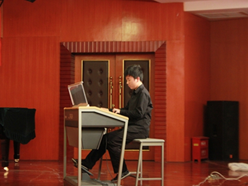 首先登场的是,钢琴三重奏《贝多芬钢琴三重奏》第一乐章,钢琴演奏者是高三年级的杨丹蕾同学,小提琴演奏者是高三年级的魏杉杉同学,大提琴演奏者是高二年级的舒韵竹同学。三位同学在自己的专业领域都获得过不同级别的奖项,非常成功的带领着大家走进了贝多芬的古典世界,把这首经典的重奏作品演绎出了自己风格与特色。随后是由高三年级学生刘国壁带来的钢琴独奏《舞狂》,他把这首高平作曲的钢琴作品演绎得淋漓尽致,气势非凡。第三个出场的是由初三年级的匡俊宏与高二年级的谢子寅带来的古典吉他与小提琴二重奏《A大调二重奏》。古典吉他演奏者匡俊宏在国际古典吉他赛事中获得多项大奖,他也是附中古典吉他专业中的佼佼者。小提琴演奏者谢子寅也曾获得国际弦乐大赛奖项,他们以过人的专业水平征服了在场所有人的眼睛与耳朵。第四个出场的是由附中高一年级学生向艺带来的古筝独奏《箜篌引》,她将这首曲子弹奏得收放自如,使大家仿佛身临其境。第五个出场的是由初一年级学生黄越轩带来的古典吉他独奏《大教堂》。第六个出场的是由高一年级学生赵小钦带来的声乐独唱《一杯美酒》,她曾获得全国比赛国际比赛的奖项,她生动活泼的演出,使观众对此印象颇为深刻。当观众还沉浸在优美的歌声中时,接下来的第七个出场的小提琴合奏《流浪者之歌》,实在令听众惊羡不已。演奏者为初一年级的邹樟、邹梦。他们双胞胎的萌娃形象深深的刻在了在场每个人心里,其俏皮的演奏与钢琴的伴奏相辅相成。第八个出场的是由刚获得第五届全国青少年民族乐器演奏比赛古筝少年组铜奖的高三年级学生文陈子涵带来的。她将这首叶小刚作曲的《林泉》弹奏得气势如虹,让人耳目一新。第九个出场的是由高二年级学生钟航的独奏《皮黄》,钟航在国内外比赛中获得了奖项。他将《皮黄》演绎得淋漓尽致,《皮黄》也是观众最为喜欢的钢琴演奏节目之一。优秀的表演与动人的作品让观众们感叹不已,古典的高雅与民族的音韵使来宾们陶醉其中。这时音乐会迎来了高潮,第十个与第十一个节目都为双排键表演,现代电子器乐的表演实在令观众们接连称赞。双排键的演奏结合了手、脚及全身的投入,使得双排键更具有艺术表演性与生命力,其模拟出整个庞大乐队的效果也为之惊艳。首先是来自附中高三年级的学生赵三川演奏的《俄罗斯狂想曲》,格里汀作品的曲风气势非凡,加上他的演绎,这首《俄罗斯狂想曲》成为了在场观众的深刻回忆。最后登场的是高二年级的陈垛尔,她带来的《Real in "D"》更是让观众认识了双排键的魅力,其收放自如的演奏,也是获得了观众的一致好评。