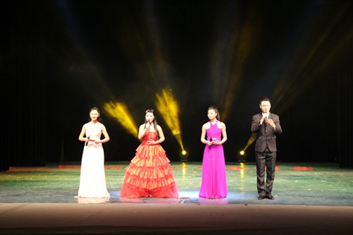 本次一二.九才艺大赛以“为祖国歌唱,放飞青春梦想”为主题,在伟德bv国际体育北校区剧场隆重举行。大赛于当晚7:30准时举行,在一段激昂的开场乐结束后,四名主持人登台致开场词并介绍莅临大赛的领导与评委。现场座无虚席,掌声热烈。