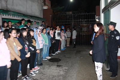 伟德官网于2015年4月21日晚在附中宿舍楼对住校生进行了本学期的消防演练,参加演练的有:蔡校长、唐书记、董科长、陈主任和办公室、学生科的全体老师,演练对象:全体住校生和宿舍保安及工作人员,演练总指挥:陈平主任。 晚9点,代表火警的口哨声吹响了,每层楼的负责老师紧急地呼喊、不断地催促住校生带上湿毛巾护住口鼻俯身迅速跑下楼,一共演习了两次,最终达到了在最短的时间内全体住校生顺利撤离宿舍楼。接下来由一名保安为同学们讲解了怎样使用灭火器,并由一名同学成功实践了使用灭火器灭火。最后,陈主任再次为同学们讲解了如遇火灾时的逃生办法和路线,蔡校长和唐书记分别就怎样在宿舍楼避免火灾发生及消防演练的重要性作了详细的讲解,对学生提出了要求,充分的肯定了这次演习。 火灾猛于虎,伟德官网将安全工作始终放在第一位,希望同学们能在一个良好的环境里生活和学习。