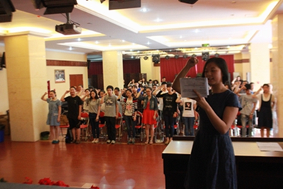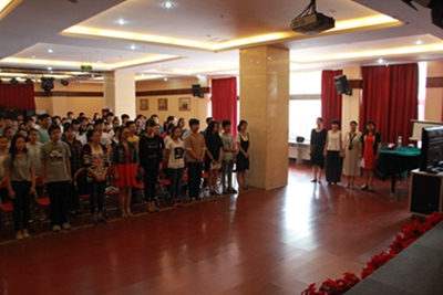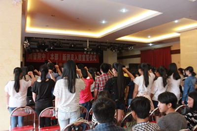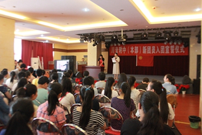 2015年5月6日下午伟德官网在学院学生活动中心举行新团员入团宣誓仪式。参会的有:附中党总支书记唐燕翎老师、学生科科长董畅老师、副科长李燕老师、团总支书记李佳老师、陈叶丹老师和全校新团员、老团员。 首先,全体肃立、唱奏国歌,然后,董科长宣布本次新团员名单,唐书记为新团员颁发团员证,接着,由高二一班团支书亢溱同学带领全体新团员,以宏亮的声音,面对鲜艳的团旗,庄严宣誓“我志愿加入中国共产主义青年团,坚决拥护中国共产党的领导,遵守团的章程,执行团的决议,履行团员义务,严守团的纪律,勤奋学习,积极工作,吃苦在前,享受在后,为共产主义事业而奋斗!”接下来,新团员代表初二二班李春媛同学上台发言,她郑重承诺将以饱满的热情,积极进取的态度投入到今后的学习生活中。最后,唐书记作了重要讲话:号召团员们努力学习,提高自身素质;牢记今天的青春誓言,用实际行动践行青春誓言,传递青春正能量,书写美好中国梦,为团旗增辉增色,为早日成为国家栋梁之材而不断奋斗。 入团宣誓仪式在高亢的团歌声中结束,此次活动为所有团员上了一堂生动的思想教育课,增强了团员的社会责任感和使命感,他们在感受着无尚光荣的同时,也肩负了一份沉甸甸的使命。
