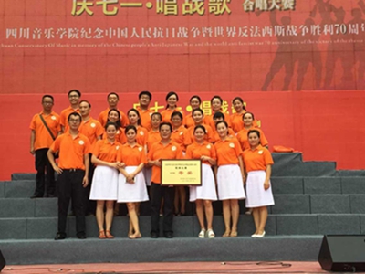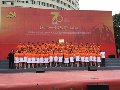 庆七一,唱“战”歌。2015年7月1日,校本部操场彩旗飘飘、歌声飞扬,以“纪念中国人民抗日战争暨世界反法西斯战争胜利70周年和红军长征入川80周年”为主题的“庆七一·唱‘战’歌”伟德bv国际体育教职工合唱大赛在这里隆重举行。 本次比赛由学校党委组织部、宣传部、工会、艺术处联合举办。活动自开展以来,全校18个党总支,51个院系和部门,共1700余名教职工积极参与,附中(本部)党总支和电子音乐系党总支、歌剧合唱系党总支、研究生党总支组成了合唱队。全体老师充分利用课余时间和休息时间排练,体现了全体附中教师团结积极进取的精神,本次附中合唱队演唱了川音的原创歌曲《为祖国歌唱》和歌曲《祖国颂》。比赛中附中老师以最饱满的热情,最昂扬的斗志,最精彩水平展现了最美的风采,取得了一等奖的佳绩!