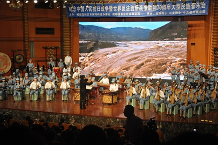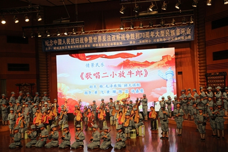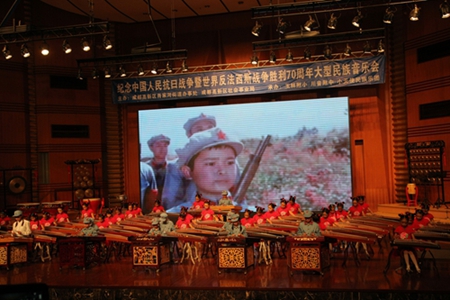 为纪念中国人民抗日战争暨世界反法西斯战争胜利70周年,伟德官网学生与成都玉林中学附属小学、四川小天使少儿民族乐团、成都高新区实验小学、成都高新区临江小学、四川省南充音乐学院、四川大学附属实验小学江安河分校、成都市武侯区太平寺(西区)小学师生于8月29日晚7:30在学院大音乐厅,共同参演了由成都高新区肖家河街道办事处、成都高新区社会事业部主办的“保卫和平 铭记历史”大型民族音乐会。 为了不能忘却的纪念,他们以音乐会的形式来纪念这一伟大胜利。《红军照我去战斗》、《民族的记忆》、《歌唱二小放牛郎》、《小八路勇闯封锁线》……一首首经典乐曲带大家重温历史,一曲曲民族赞歌激荡人心,同学们共同回顾了抗日战争这段艰难的民族抗争史,缅怀先烈,弘扬爱国情怀,为振新民族精神而努力。