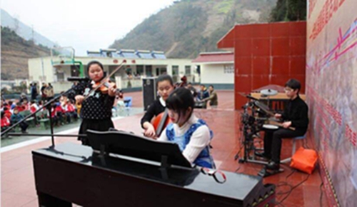 2016年新年前夕,为了让偏远山区彝族村寨的儿童能感受音乐的魔力,感受人间的温情,我们附中初一年级的16个同学在父母的陪伴下,带着我们最亲密的朋友——乐器,自驾车踏上了征程,前往乐山市金口河区共安乡,为当地的彝族小朋友献上一场音乐的盛宴。