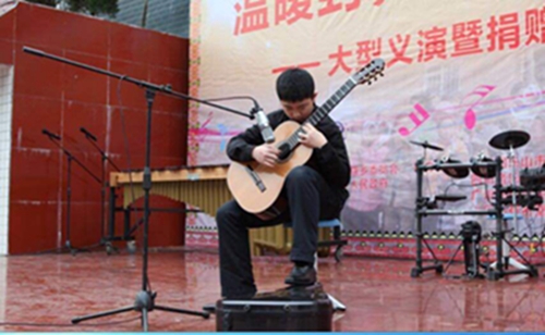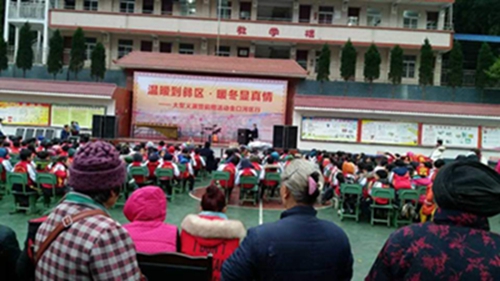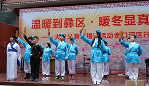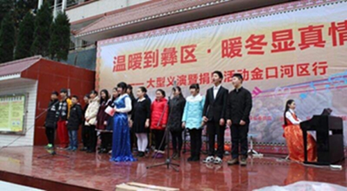 冬天的山区格外寒冷。义演的场地是共安乡彝族村小的操场。操场上窄窄的旗台便是我们的舞台。我的妈妈是这次活动的组织者之一。她一直热衷于公益事业。妈妈的朋友们提前两天就到了村小,布置我们的舞台。我们到了之后,妈妈们帮我们化妆更衣,爸爸们将乐器搬到旗台上安装调试。