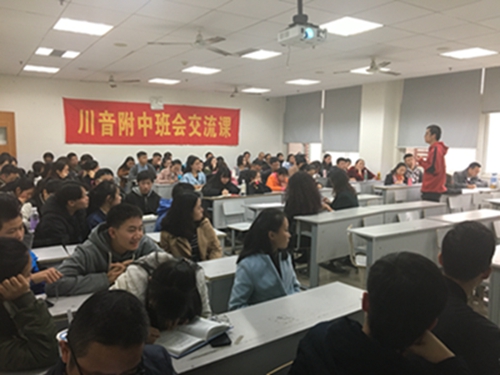 2016年11月15日下午2:30,两节面向川音附中校本部以及新都校区观摩的教师、学生的班会交流课在新教学楼309开课。到场听课的学生、教师众多,学习气氛浓厚。