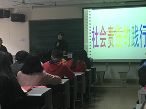 3:25开始的第二节班会课,由校本部高一三班全体同学与班主任共同完成。讲课同学从“责任”出发,引导听课同学思考责任的本质。责任是每个人应尽的义务,它存在于生活中的每一个角落。对责任有清醒的认识正是广大中学生最需要学习到、领悟到的。由“责任”出发,到“集体责任感”与“社会责任感”上,同学们深刻地认识到共同努力、互相促进的重要性。讲课同学引用阿里巴巴集团董事长马云的一次演讲内容,说出了信仰的本质:感恩与敬畏。社会名人的一番演讲让同学们感受到“深刻的道理,踏实的实践”是有必要的,如马云所说:“我们一直有着拥有天蓝水清的中国的权利。希望20年后,中国变得更好。”要想祖国更繁荣强大,需要每一个人的努力奋斗,也需要大团结大智慧,将祖国拥有光明未来作为志向,正是拥有社会责任感的直接体现。课堂的最后,高一三班班主任王春燕老师将“背十字架”的故事作为结尾的总结,说明了“有责任担当者,用于前行;敢于前行者,光明未来”的道理,同学们受到深刻的启发。