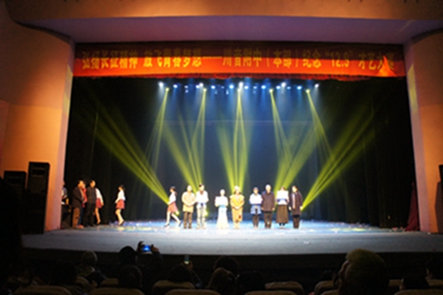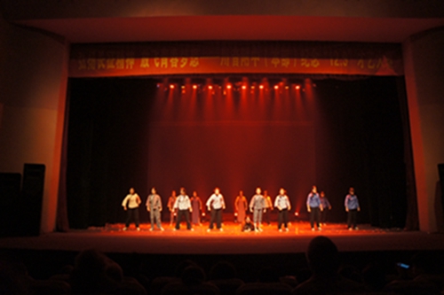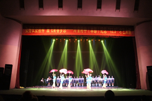 一段激昂的开场歌舞结束后,比赛正式开始,四名主持人登台致开场词,现场座无虚席、掌声热烈、高潮迭起。同学们通过舞蹈、歌唱、话剧等不同形式,展现了81年前的抗日情景和当今学子的青春风貌。比赛结束后,评委分别做出了精彩的点评:对此次大赛给于了充分的肯定和更高的期望。最后嘉宾上台为获奖班级颁奖并合影留念,大赛圆满结束。
