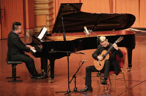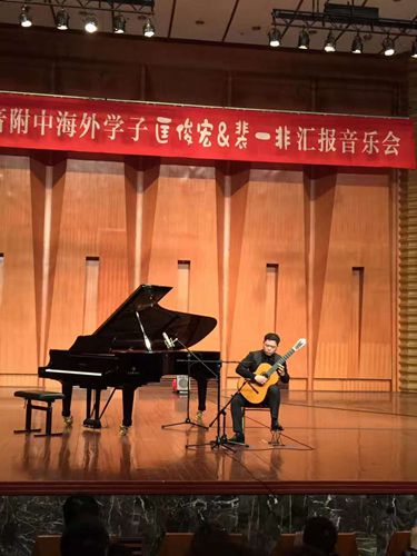2017年3月19日晚,伟德bv国际体育大音乐厅,“川音附中海外学子——匡俊宏&裴一非古典吉他音乐会” 顺利举行! 匡俊宏,2015年在川音附中就读高中一年级时,便获得美国约翰•霍普金斯大学皮博迪音乐学院全额奖学金和助学金,成为该校史上最年轻的本科生。裴一非,2015年川音附中毕业后考入德国黛特莫尔德国立音乐学院。今天,在川音附中蔡校长的大力支持下,两人有机会再次聚首母校举办音乐会,以报母校之恩。 音乐会中,匡俊宏与裴一非分别演绎了音乐会的上下半场,其中匡俊宏还与钢琴合作演奏了《阿兰胡埃斯协奏曲》。整场音乐会座无虚席,非常成功,最后一首乐曲结束后,匡俊宏在现场观众的热烈要求下返场了两次。 “这次回川音开音乐会心里很激动,也非常感谢蔡校长对音乐会的大力支持。自2012年进入川音附中后,在川音音乐厅举办了很多场音乐会,但这次是最为期待的一次。在大音乐厅弹琴的感觉很亲切,很感动。作为川音学子,一定会在未来更加努力,以报答母校对我的帮助与期望!”音乐会结束后,匡俊宏发出了如是感慨。