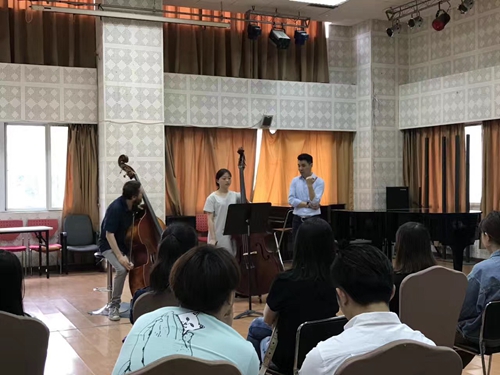 2017年5月22日至2017年5月25日来自法国里昂国立高等音乐学院的低音提琴教授——Cedric Carlier来伟德官网举行了大师班授课及音乐会。 大师班在学院琴房大楼多功能厅举行,Cedric教授的教学细致入微,对于每一个学生都很耐心的指出其需要改进的地方。为期四天的大师课使同学们受益匪浅,旁听的每位同学在上课时,从中可以看到自己平时练琴时遇到过同样的问题,在Cedric教授的讲解指导后,解决了大家不懂的问题。Cedric教授还教了一些运弓的技巧,课后同学们也总结出了多条运用技巧。 5月25日在琴房大楼多功能厅Cedric教授举行了他的独奏音乐会。音乐会上他为同学们演奏了:《Serenade》、《Elegie》、《Danzas Espanolas》、《intermesso》、《Aria et Rondo》,他用精湛的技艺,饱满的热情,精彩的舞台表现力演绎了多首曲子,同学们获益良多,被深深的折服。 在音乐会阵阵掌声中,Cedric教授来伟德官网举办的大师班授课及音乐会圆满落幕。