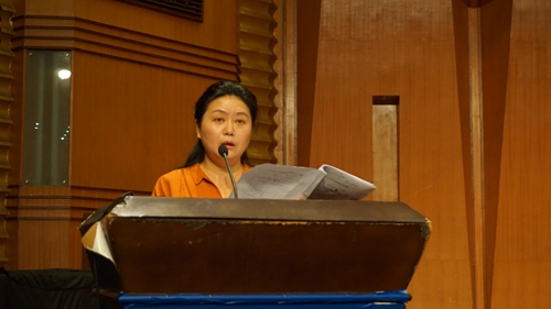 接下来是教师代表董畅老师讲话:董老师和同学们共同探讨了几个问题:为什么学?因为时代、竞争、发展要求我们必须学习。怎样学习?我们要目标明确,学会分解目标,制定实现目标的计划,这样更有利学习进步。她对新老同学做出了叮嘱,对即将面临升学高三同学进行了勉励,同学们以热烈掌声回应老师的谆谆教导。