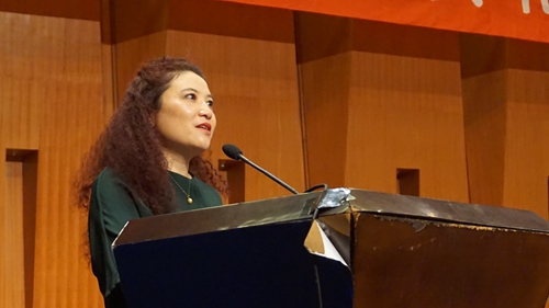 首先是附中党总支书记唐燕翎老师讲话,唐书记发表了热情洋溢的新学期致辞,她代表学校对辛勤耕耘的全体教职工表示了衷心的感谢,充分肯定了老师和同学们的优异成绩,同时指明了师生今后努力的方向,勉励全校师生在新学期要更加努力,明志勤学,做性情高雅,道业惟优的川音人。