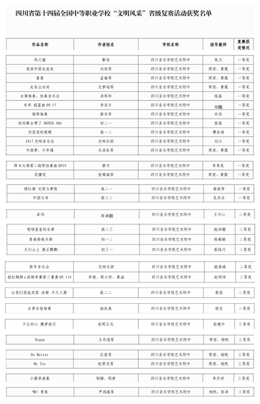 伟德官网参加2018年由教育部、人力资源和社会保障部、中央文明办、共青团中央、全国妇联、中国关工委、中华职业教育社联合主办四川省第十四届全国中等职业学校“文明风采”省级复赛活动,多项参赛作品获奖(如图),一等奖15个,二等奖8个,三等奖6个,并获得为四川省第十四届全国中等职业学校“文明风采”省级复赛活动学校组织奖。 焦力、周密、黄凰、陆晶、杨旸、许兵、张铭、谭孙涛、刘江、薛莉萍、吴兵法、李秀美被评为 优秀指导教师。