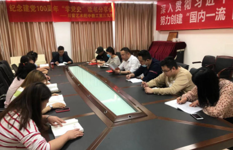 第三支部全体党员以支部书记张景龙分享学习了《中国共产党简史》中从“中共一大”到“中共十九大”中国发展的每个重要节点和关键历史史实。党员同志们也纷纷发言分享了党史学习的心得,会场气氛热烈。