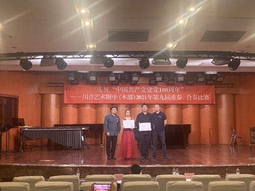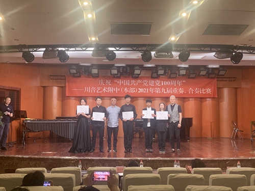 本次比赛参与面广,形式多样,除三人以上重奏形式外还加入了双人重奏形式,分别有打击乐四重奏、民乐三重奏、弦乐四重奏、管乐三重奏、钢琴二重奏等。参赛同学在舞台上高超的技术水平、丰富的音乐表现力以及默契的协作配合能力,获得了在场的评委老师与观众阵阵掌声。所有选手演奏结束后,每一位评委老师对所有参赛组做出了细致的点评,在肯定同学们演奏能力的同时,也指出了他们的不足,希望同学们在今后的学习中能够更好的了解自身优势与不足,成为更加优秀的演奏者。 最后,由焦力副校长宣布获奖结果,评委老师分别为获奖选手颁奖、合影。在老师、家长、同学们的阵阵欢呼声中,附中第九届重奏、合奏比赛圆满落幕。他们在比赛中迅速成长,既锻炼了协作配合的能力又提升了专业技能。相信在学院领导的大力支持下,附中一年一赛,形成自己的专业品牌赛事,为同学们提供更好更多展示自己专业技能的机会。