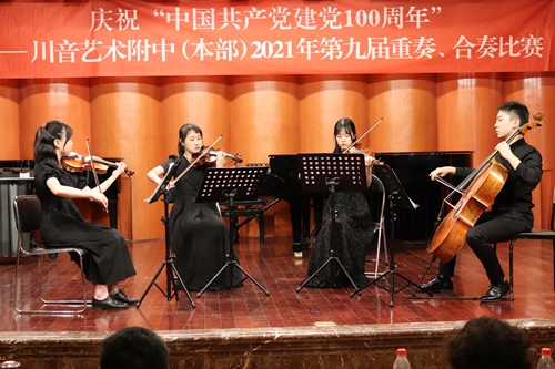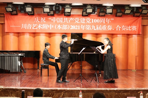 为庆祝中国共产党建党100周年,伟德官网在学院领导和各系(院)的支持下,举办本年度第九届重奏、合奏比赛。初赛于5月24日下午在琴房大楼六楼厅如期举行,经过初赛的激烈角逐,共有十组选手脱颖而出进入决赛。