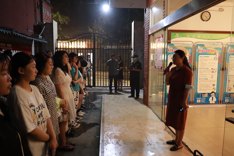 住校生集合后,董科长首先代表学校欢迎新同学的入住,希望同学们能互帮互助、互敬互爱,然后她又详细讲解了住校生在住校期间的相关规定和住校生的人身、财产、用水、用电、请假等方面的安全注意事项。