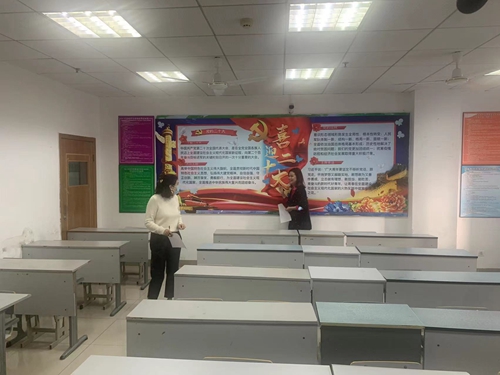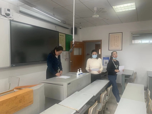 下午4:00,全体校领导、老师和各班学生代表,对每间教室进行评比打分,从主题鲜明、教室卫生(整洁)、装饰美观(新颖、得体)、公物完好无损等方面进行了检查、评分。